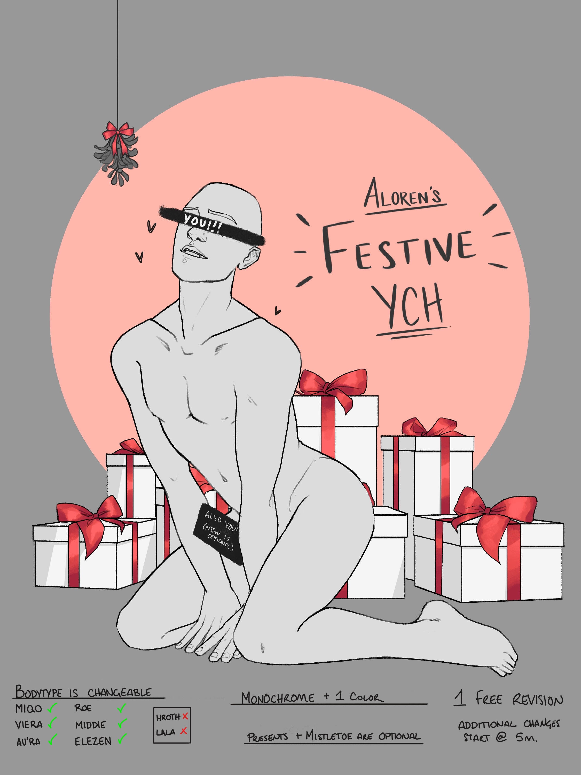 1. Choose NSFW or SFW2. Provide clear references of your character both clothed + nude.Delivery time between 1-3 weeks, potentially longer if lower in slot priority.